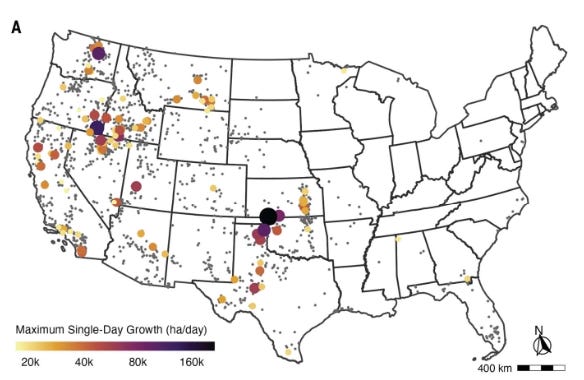 If you just read one thing, this cover story from Science, also written about in The New York Times (<-gift links wherever possible), was like a tidal wave through the wildfire community. “The speediest 2.7 percent of blazes accounted for almost 80 percent of structures destroyed, two-thirds of fatalities and more than 60 percent of the money spent on fire suppression.” Science can help us figure out what the difference is between a big wildfire and a dangerous one. “We’ve been so focused on size,” said Jennifer Balch, the study’s lead author and an associate professor of geography at the University of Colorado Boulder. “But what we really need to focus on is speed.”